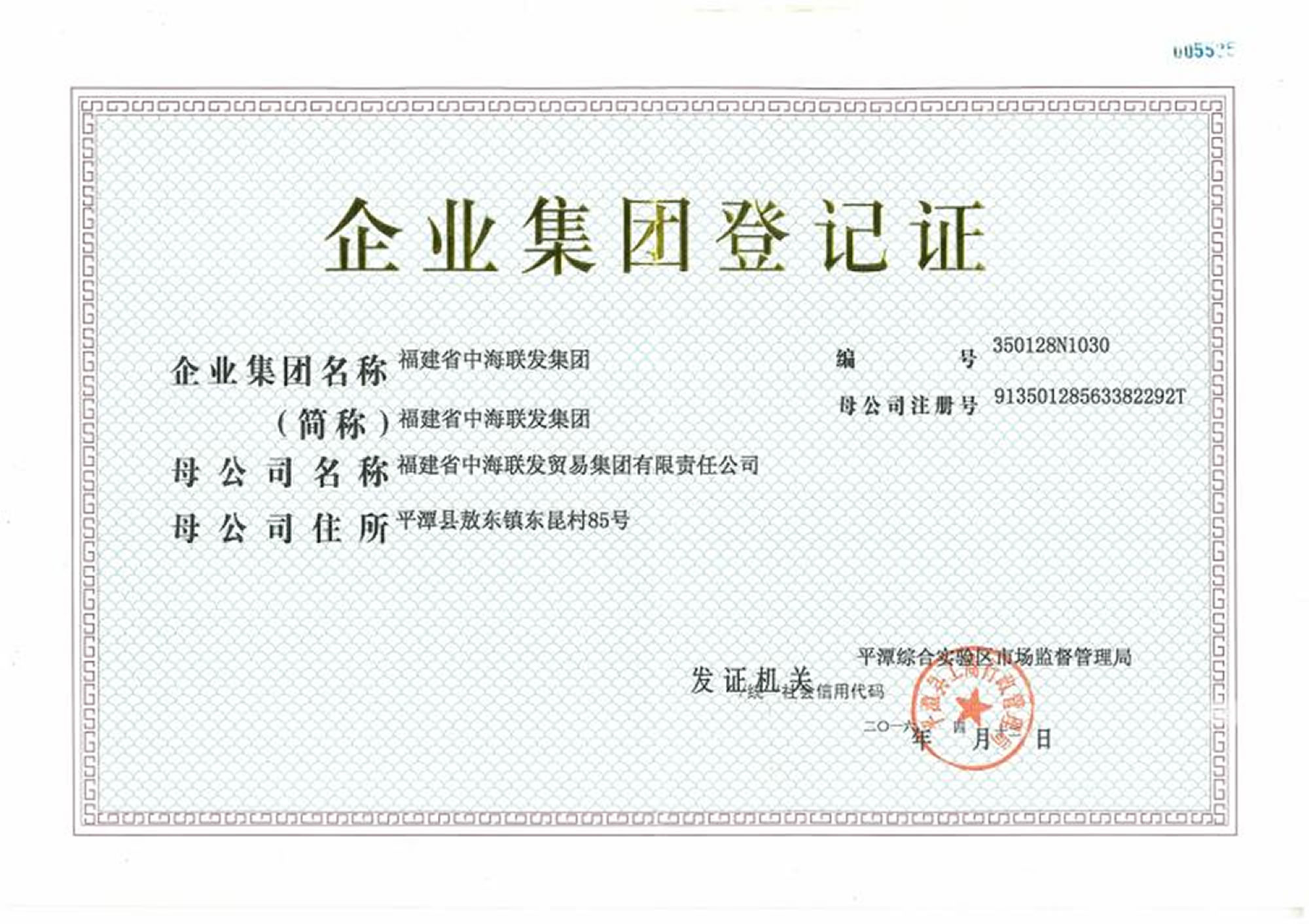 中海聯(lián)發(fā)集團(tuán)企業(yè)集團(tuán)登記證