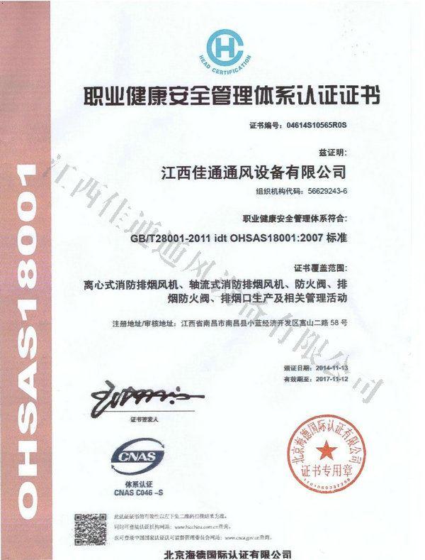 當(dāng)前位置:風(fēng)機廠家 > 資質(zhì)證書 > 職業(yè)健康安全管理體系認證證書