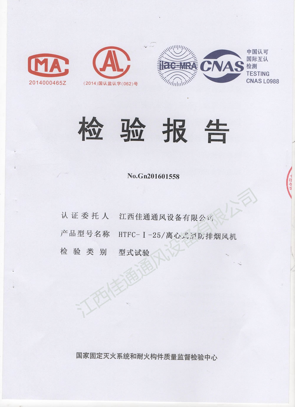 HTFC-I-25離心式消防排煙風(fēng)機(jī)檢測報告