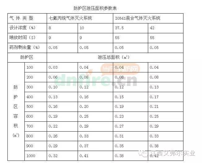 (2)將防護(hù)區(qū)容積和保護(hù)對象的滅火設(shè)計(jì)濃度帶入本表中,便可快捷查得防護(hù)區(qū)的總泄壓面積。