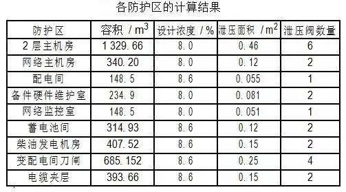依次類推,各防護區(qū)的計算結果下表所示: