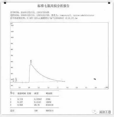4、上海某工商局送檢的七氟丙烷氣瓶試檢與七氟丙烷成分不符