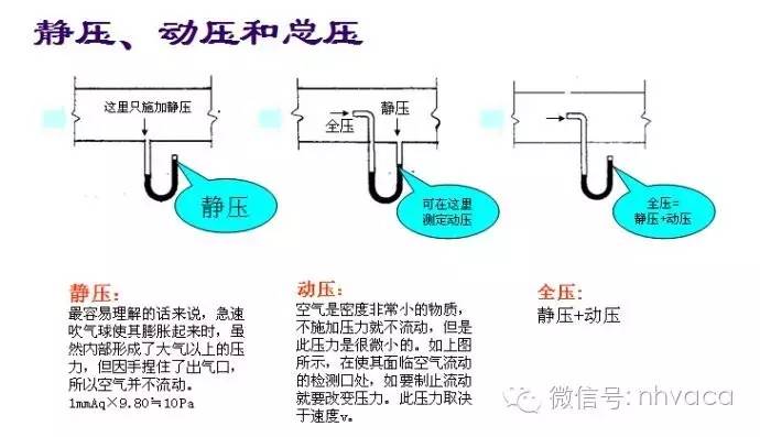 由于空氣分子不規(guī)則運動而撞擊于管壁上產(chǎn)生的壓力稱為靜壓。計算時,以絕對真空為計算零點的靜壓稱為絕對靜壓。以大氣壓力為零點的靜壓稱為相對靜壓??照{(diào)中的空氣靜壓均指相對靜壓。