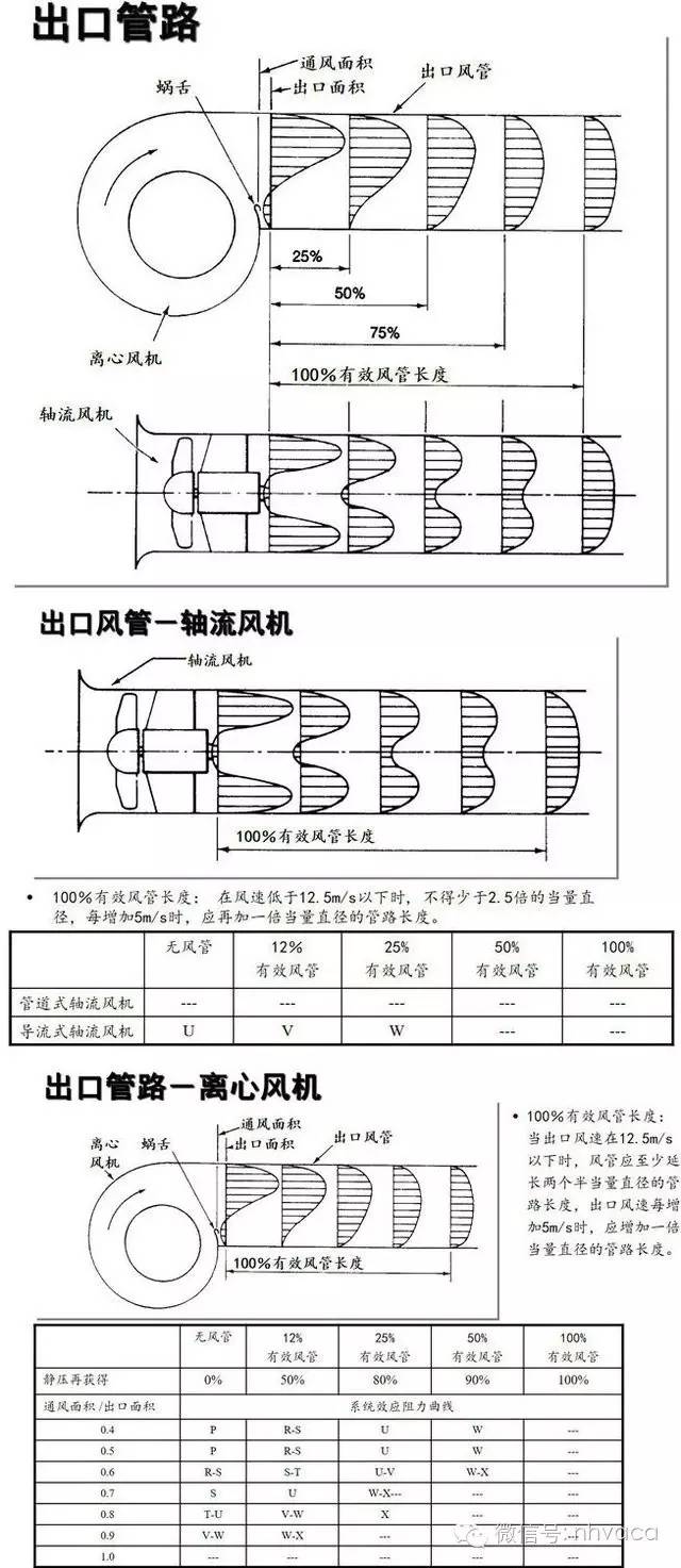 在很多系統中,考慮使用比風機出口大的一段出口風管是合適的。在這些情況下,將一些風機動壓轉換成靜壓,使用于克服系統阻力的靜壓得以增加。