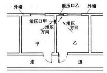 方法一如圖2所示,甲乙兩房間分別開設(shè)泄壓口,泄壓口甲大小為甲房間所需的泄壓口面積,泄壓口乙大小為乙房間所需的泄壓口面積。方法二如圖3所示,在甲乙房間公用的墻壁上開沒泄壓口甲,在房間乙的外墻上開設(shè)泄壓口乙,泄壓口甲大小為甲房間所需的泄壓口面積,泄壓口乙大小為甲乙兩房間所共需的泄壓口面積。