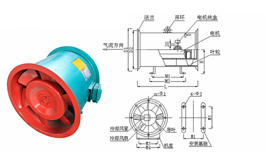 py消防高溫排煙軸流風(fēng)機主要部件組成: