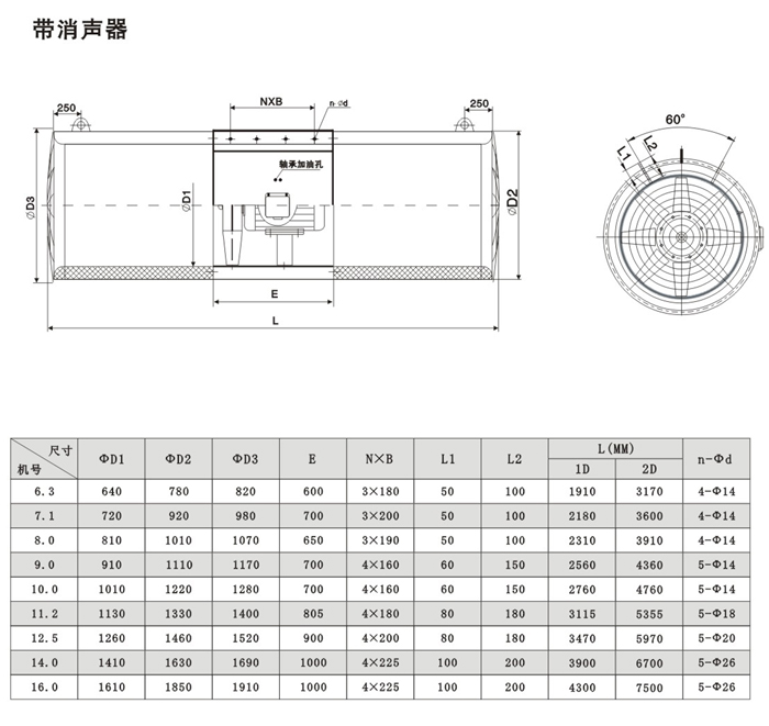 消聲器:消聲器長度通常為風(fēng)機(jī)直徑的一倍,當(dāng)噪聲要求高時,亦可以取風(fēng)機(jī)直徑的二倍,消聲器與風(fēng)機(jī)本體采用螺栓固定。