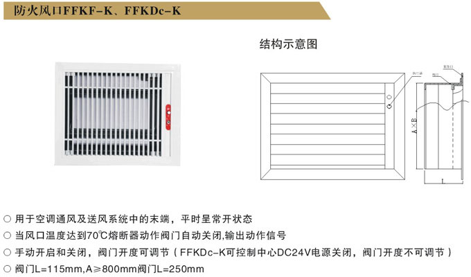 2、防火風(fēng)口用于通風(fēng)空調(diào)系統(tǒng)的末端,其動作溫度為70℃?;馂?zāi)時需在送排風(fēng)口隔斷火源。